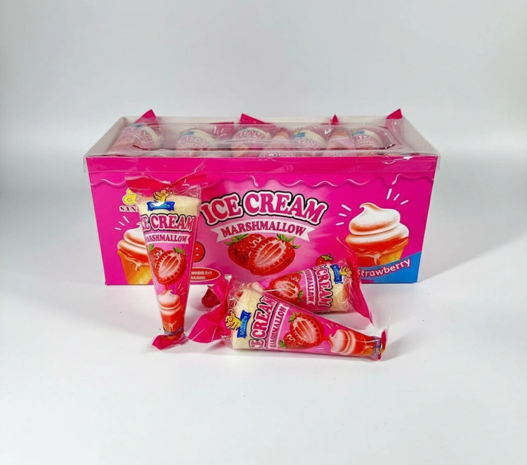 مارشمالو بستنی قیفی (Ice Cream Marshmallow) طعم توت فرنگی